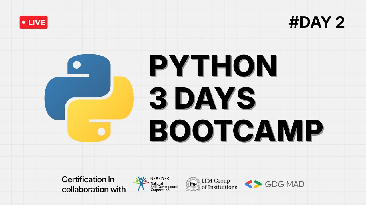 Python 3 Days Bootcamp in collaboration with the Google Developer Group MAD Mumbai, National Skill Development Corporation, ITM Group of Institutions, and LetsUpgrade🤩