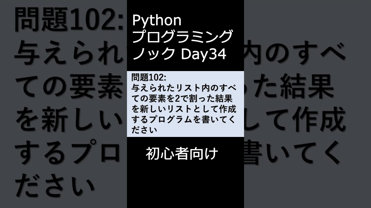 初心者向けのPythonのプログラミング問題です。入門編としてチャレンジしてください。Pythonの正答例は以下になります。