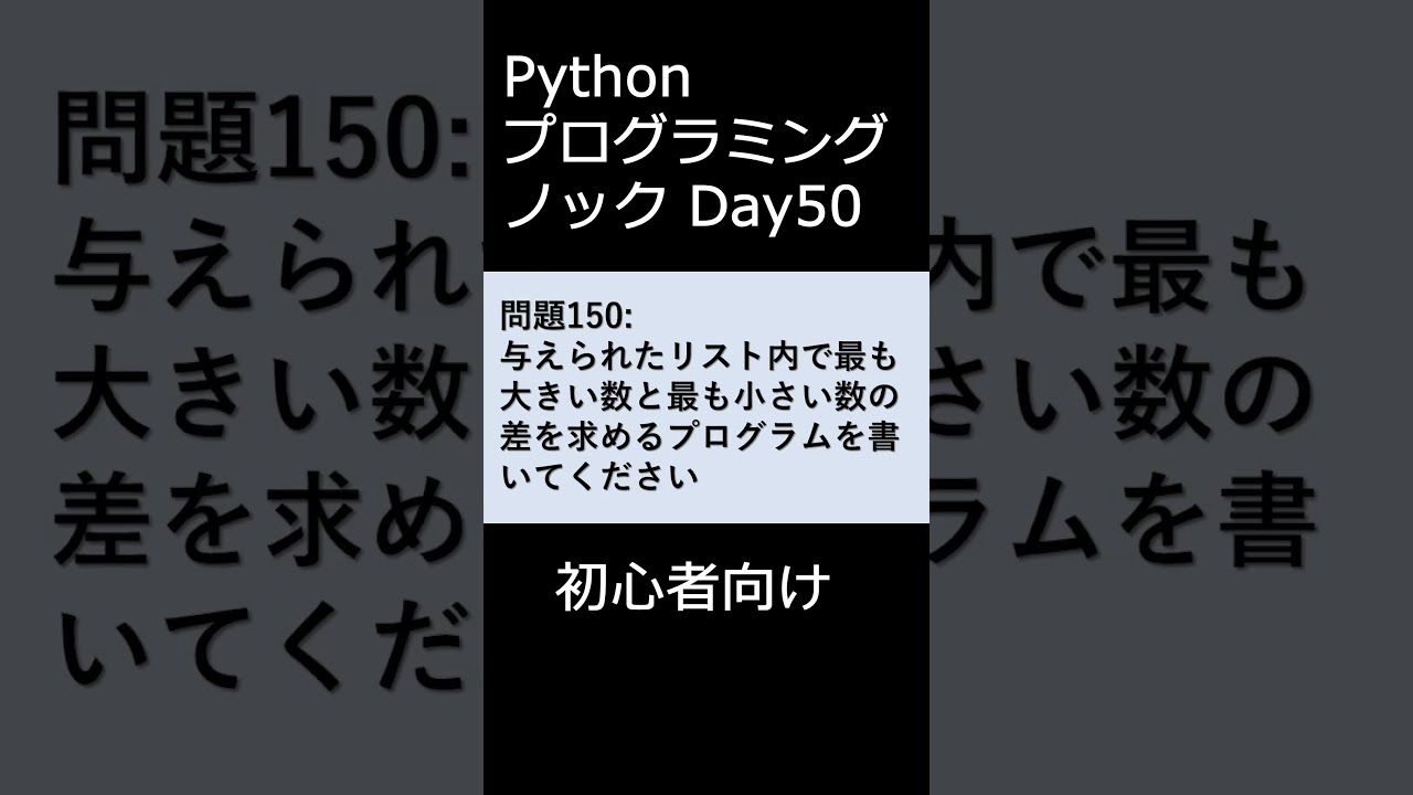 初心者向けのPythonのプログラミング問題です。入門編としてチャレンジしてください。Pythonの正答例は以下になります。