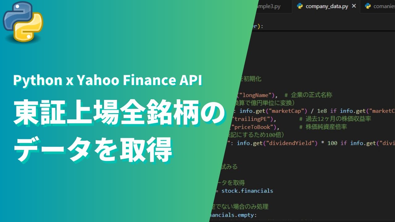 【無料で最強】Python x Yahoo Finance API でスクレイピングなしで東証上場全銘柄を取得 #003 スクレイピング Twitter Facebook はてブ Pocket LINE コピー 2025.05.15 2025.05.14 もくじ 【Note】 コード詳細はこちらから↓ https://note.com/sarukyo/n/nd82983e60657?sub_rt=share_pb ブログ↓ https://sarukyo.net/ =============