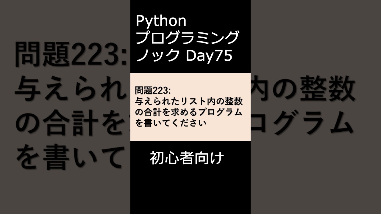 初心者向けのPythonのプログラミング問題です。入門編としてチャレンジしてください。Pythonの正答例は以下になります。