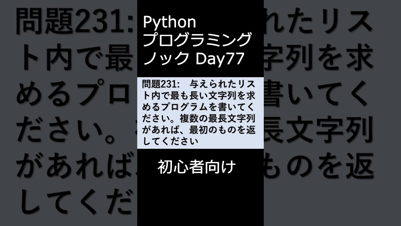 初心者向けのPythonのプログラミング問題です。入門編としてチャレンジしてください。Pythonの正答例は以下になります。