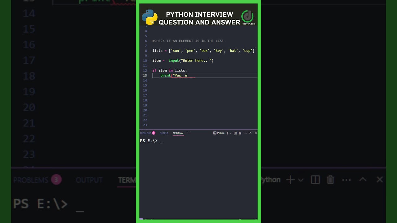 #pythonforbeginners #pythoninterview #coding #pythoncode #pythoninterviewquestionsandanswers #pythoninterviewquestions #python #pythonshorts #interviewquestions #programming #pythoninterview #dezven #learnpython #techshorts #developer #pythontips