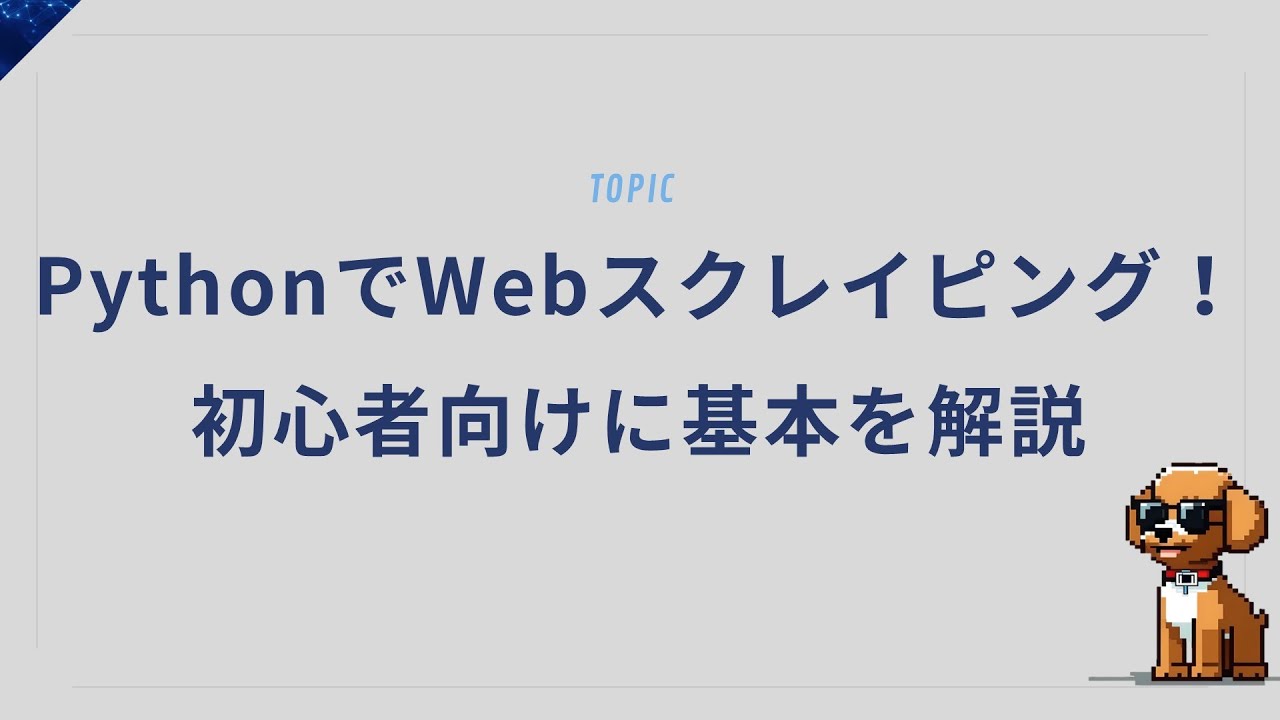 PythonでWebスクレイピング!初心者向けに基本を解説 スクレイピング Twitter Facebook はてブ Pocket LINE コピー 2025.06.22 2025.06.21 #Python #Webスクレイピング #自動化 Pythonを使ったWebスクレイピングの基本を解説!BeautifulSoupやSeleniumを活用して、ウェブサイトからデータを取得する方法を学びます。初心者でもすぐに実践できる内容です!