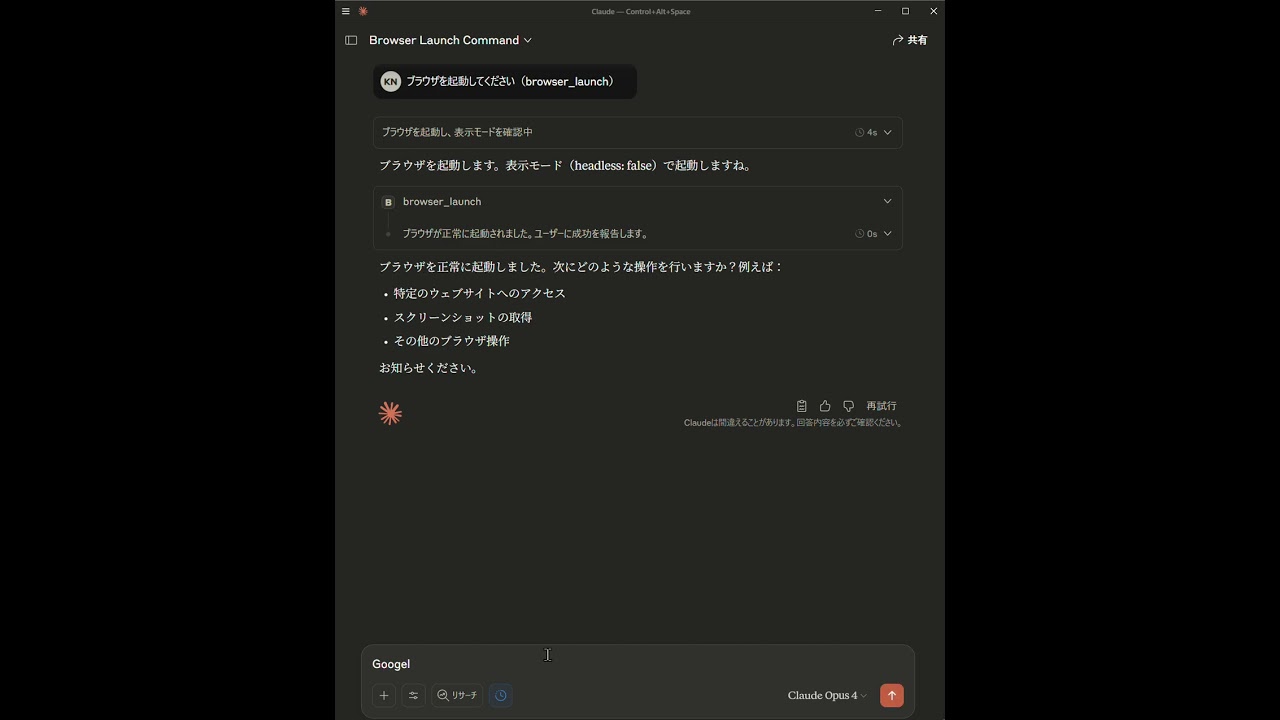 ClaudeDesktopのfilesystemMCPを使って、ブラウザ操作MCPを自作で作ってみました!ClaudeDesktopからGoogle Chromeを立ち上げて、検索ページを開くことができました!