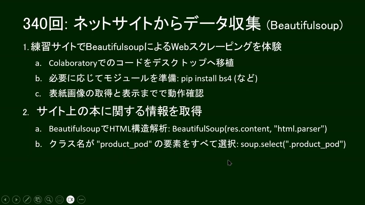 今回は、インターネット上のサイトからページ内にある本のタイトルなどの情報を持ってくるスクレーピングの手法について紹介します。