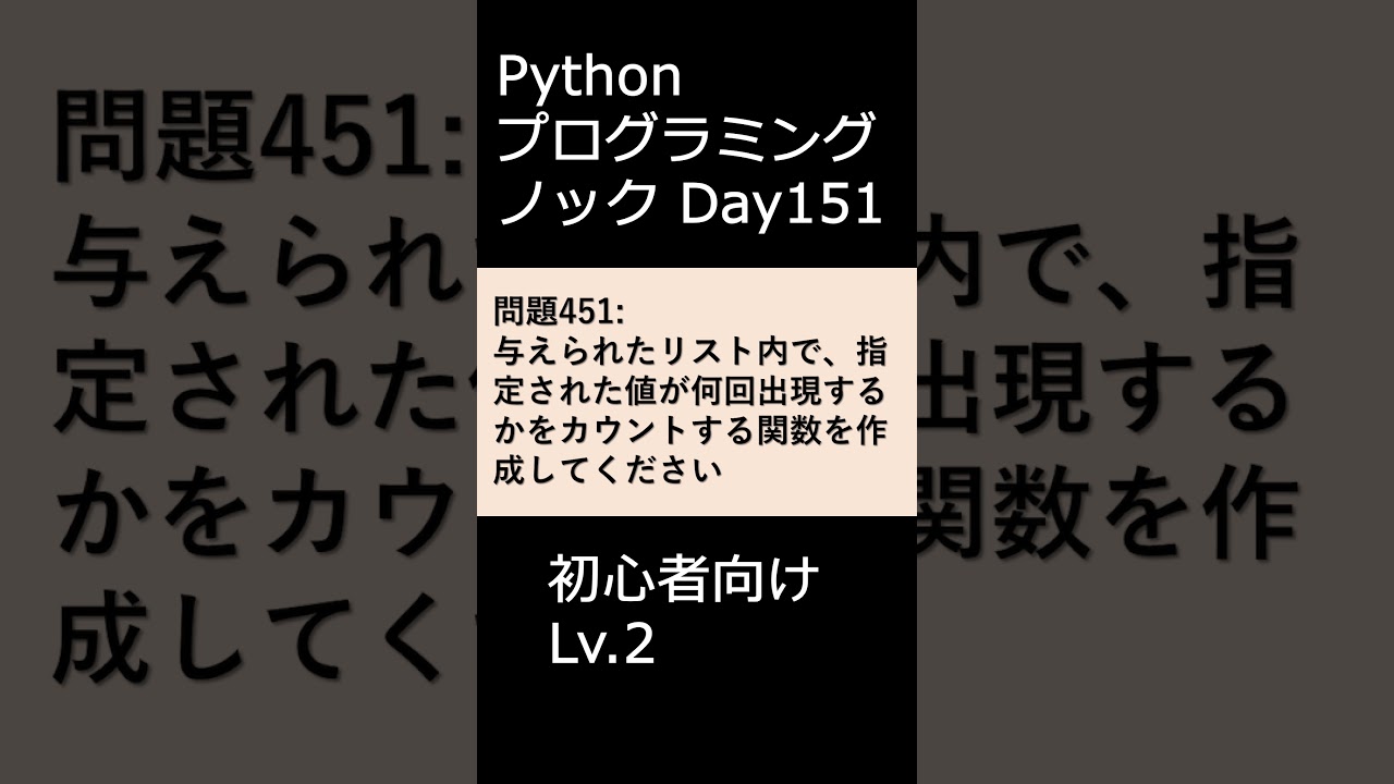 初心者向けのPythonのプログラミング問題です。入門編としてチャレンジしてください。Pythonの正答例は以下になります。