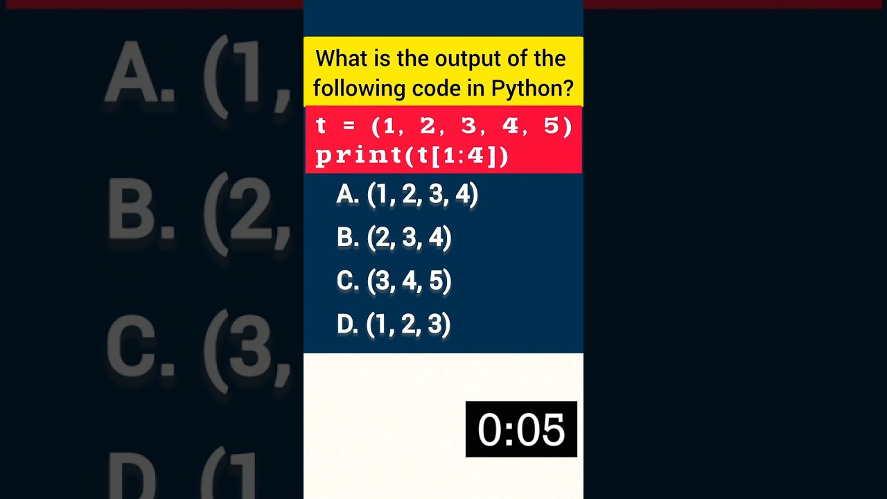 #Python #PythonTuples #PythonQuiz #TupleSlicing #LearnPython #PythonTutorial #Coding #Programming #PythonForBeginners #TechShorts #pythonforbeginners #basicsofpython #cbse11 #cbse12
