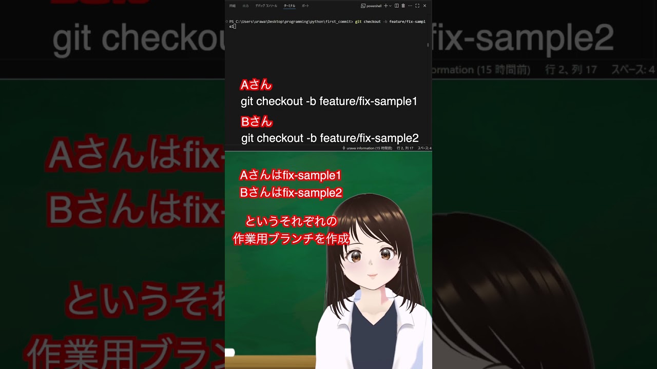 【Python環境構築#18】60 秒でできる!Gitブランチ作成とマージ実演 #shorts