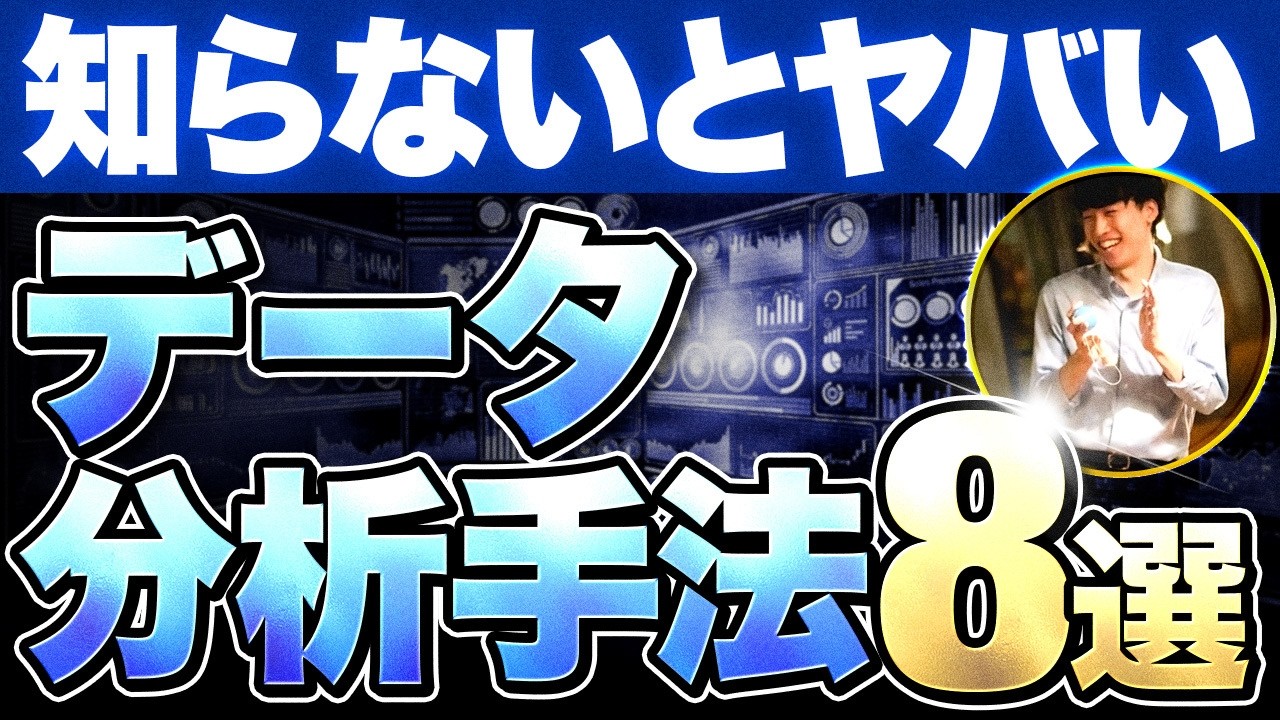 本動画では、データ分析初心者でもすぐに実務で活用できる定番の分析手法8選を、現役データサイエンティストがわかりやすく解説します。売上分析、顧客分析、マーケティング分析など、ビジネスシーンで頻繁に使われる手法を具体例とともに紹介しました。明日から使える実践的なテクニックを身につけたい方は必見です!