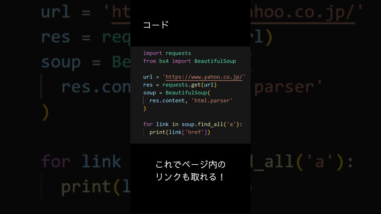Pythonの入門!BeautifulSoupでWebページを解析! #Python スクレイピング Twitter Facebook はてブ Pocket LINE コピー 2025.09.27 PythonでWebスクレイピングや解析するならこれ一択!「BeautifulSoup」を紹介! 簡単なコードですぐに使えるので、開発やデータ収集の第一歩におすすめです。 📌 今回のポイント ・BeautifulSoupの基本機能 ・シンプルなコード例 ・使いどころの紹介 ─────────────── 🎥 競馬AI開発日記シリーズ → Pythonで競馬予想AIを作る挑戦を記録しています! 🎙 使用音声:ずんだもん(VOICEVOX) ♬BGM:YouTube Studio