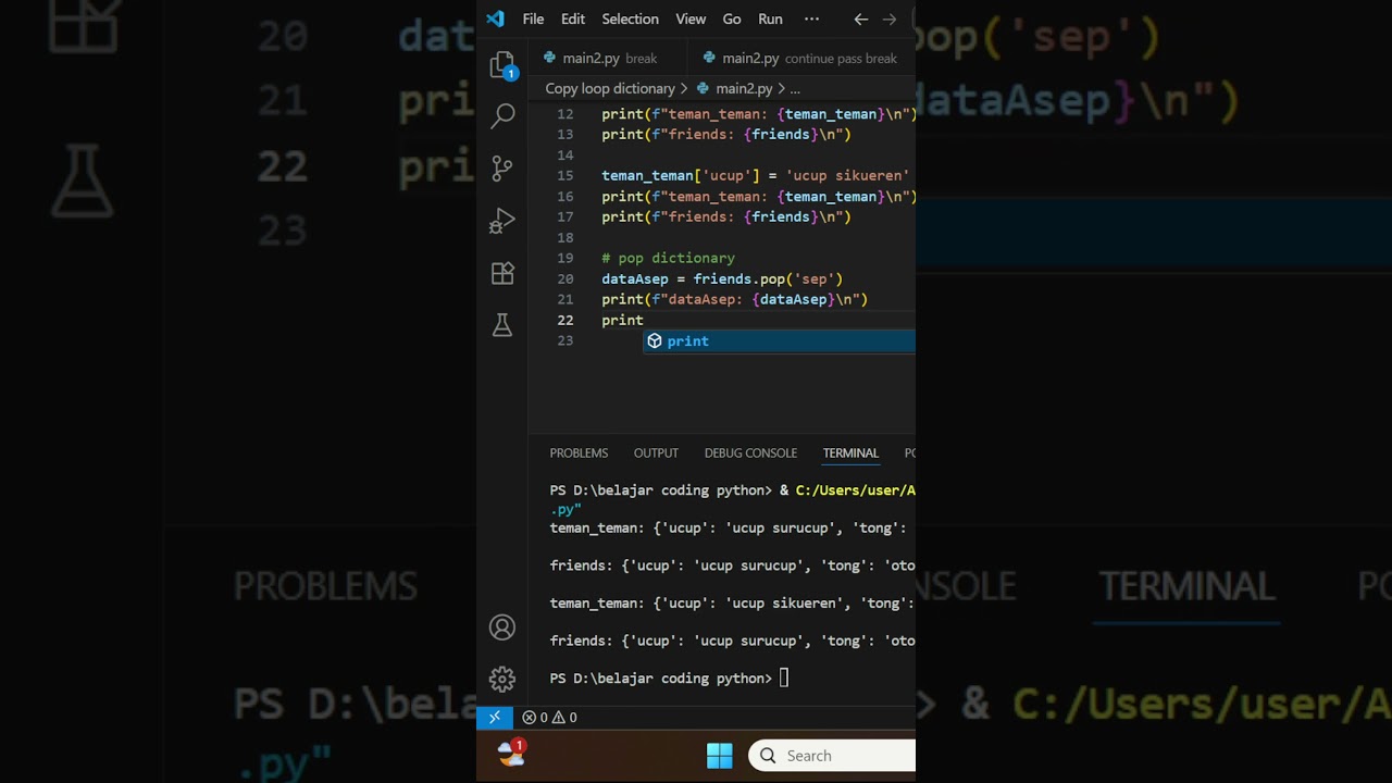 Belajar operasi copy dictionari python 学習 Twitter Facebook はてブ Pocket LINE コピー 2025.10.03 2025.10.02 #coding #pythonforbeginners #python #fyp #viral #shorts