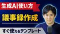 【生成AI使い方】会議の議事録作成が数秒で完了|すぐ使える生成AIテンプレート【活用シーン別プロンプトエンジニアリング05】