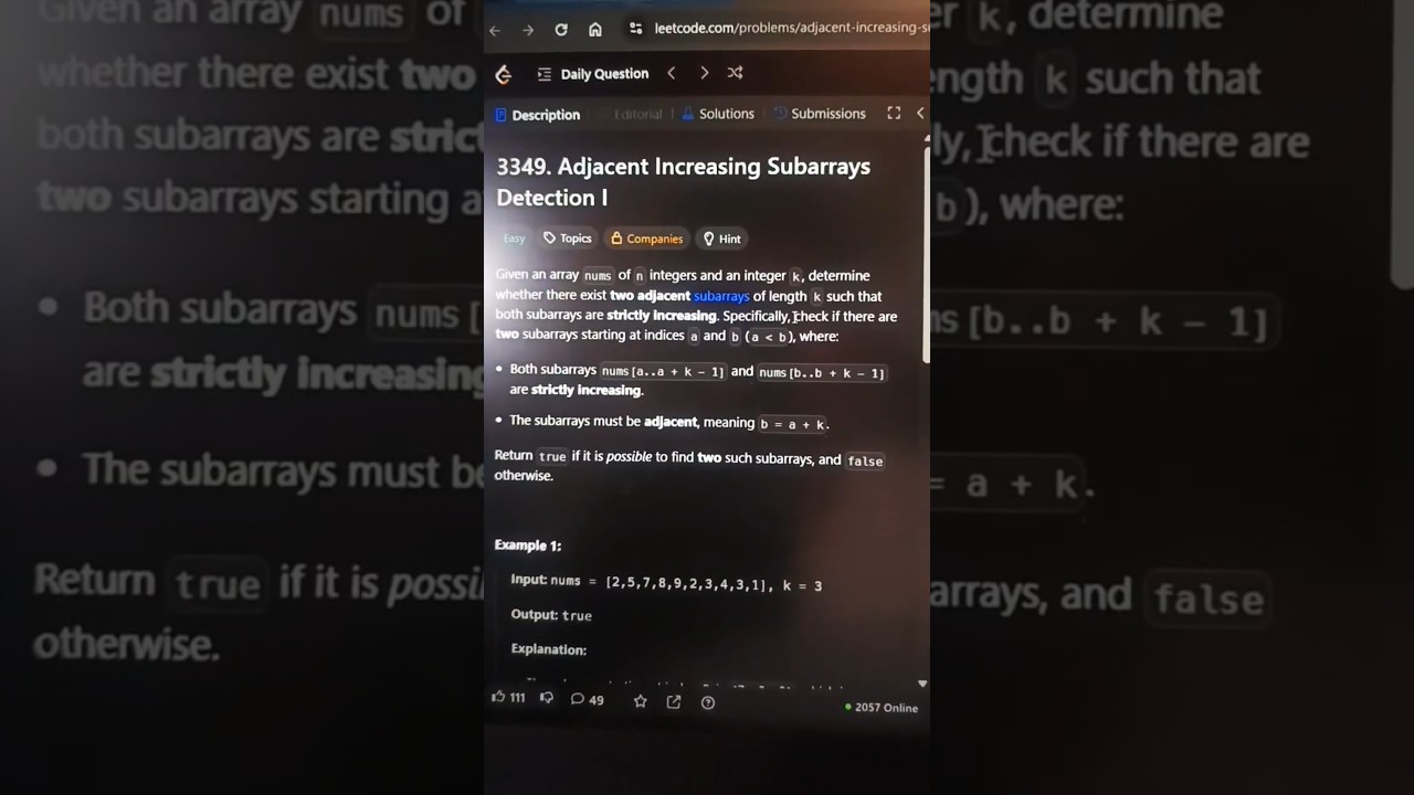 leetcode 3349 solution, adjacent increasing subarrays detection i, leetcode 3349 java, leetcode 3349 c++, leetcode 3349 python, leetcode 3349 explanation, leetcode daily challenge 2025, leetcode shorts india, java dsa problem, python coding shorts, c++ leetcode problems, daily leetcode shorts, viral coding shorts 2025, faang interview preparation, trending coding video, coding motivation india, leetcode trending today, coding shorts viral india, software engineer daily challenge