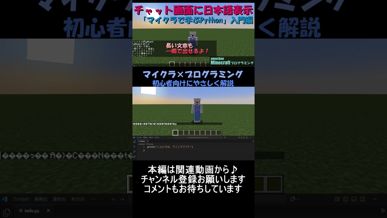 【マイクラ×Python】日本語をチャットに表示する方法!初心者でも簡単!_short8_Minecraftプログラミング #マイクラ ,#プログラミング ,#python ,#shorts