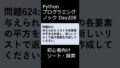 初心者向けのPythonのプログラミング問題です。入門編としてチャレンジしてください。Pythonの正答例は以下になります。