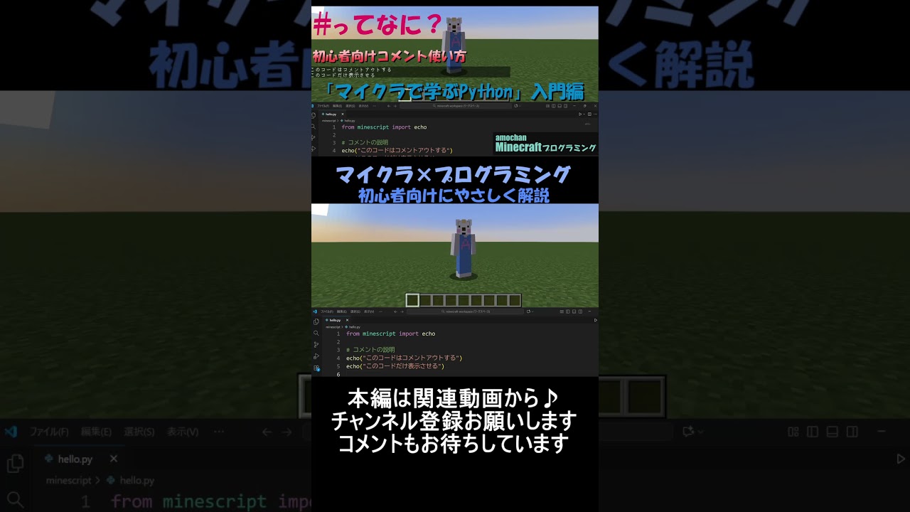 #マイクラ ,#プログラミング ,#Python ,#Minecraft ,#初心者 ,#コメント ,#コメントアウト ,#Java ,#Minescript ,#子供 ,#簡単