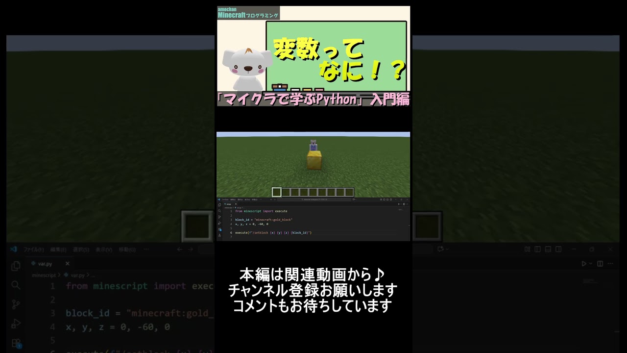 #マイクラ ,#プログラミング ,#Python ,#Minecraft ,#初心者 ,#変数 ,#Java ,#Minescript ,#子供 ,#入門