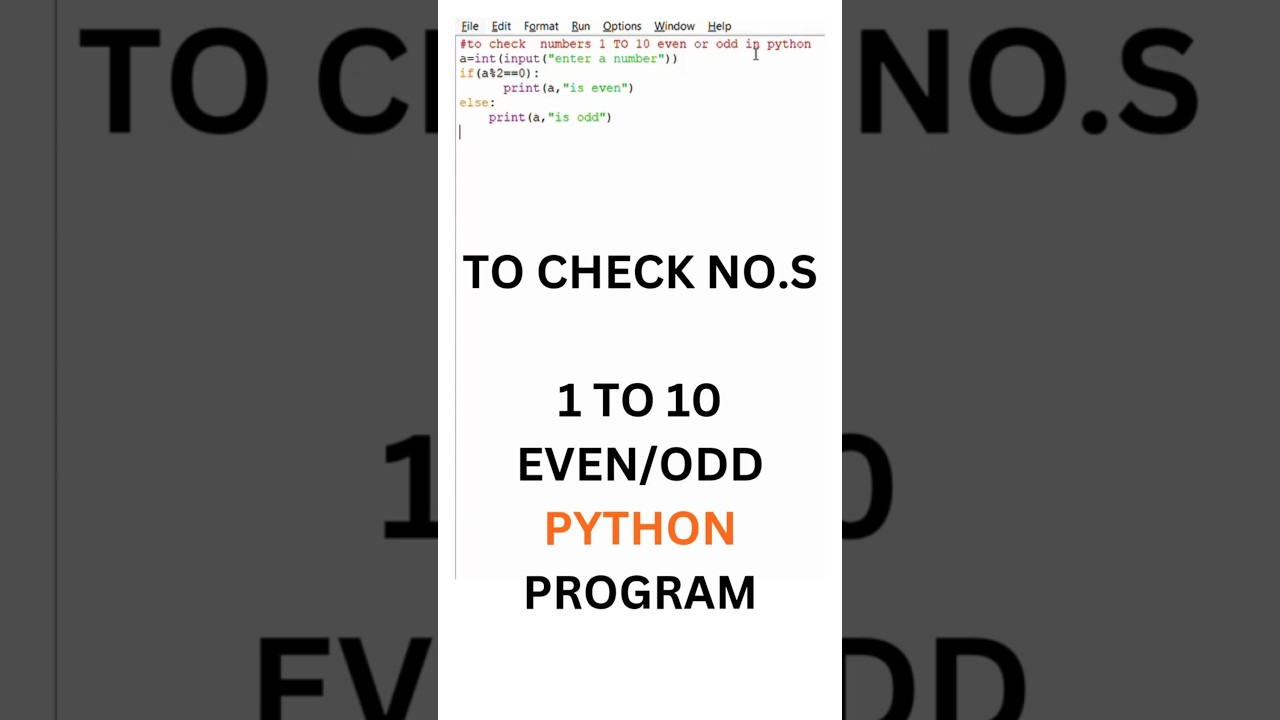 #Python #PythonShorts #PythonBasics #IfElse #WhileLoop #PythonProgram #CodingShorts #LearnPython #PythonForBeginners #ICSE #CBSE #Class7 #CodingForStudents #ExcellentTutorial #EvenOrOdd #LoopInPython #PythonLogic #StudyWithMe